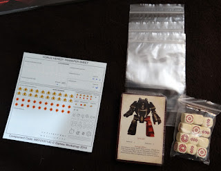 It also contains some decals, dice, cards and some boards and counters if you fancy playing the game. Sticking with the honest theme, all I've done with these is pop the boards and the counters out of the surrounding board to create some more space in the box while I build as I have no intention of using them.
