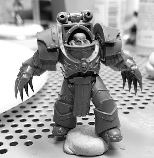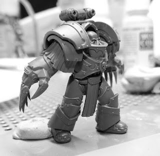 The Chaplain - I've left his Crozius arm off for painting as it obscures even more of the cloak and isn't easy to work around.