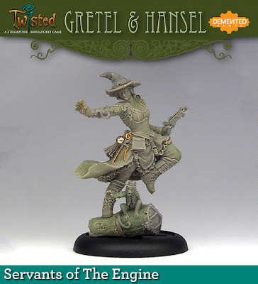 Gretel and Hansel (the lady and the monkey respectively!) are sculpted by Sebastian Archer. They belong to the Servants of The Engine faction. Once again a beautiful sculpt, the detail on the corset, the mechanical gauntlets, the MONKEY! Love it!