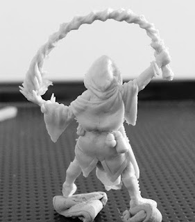 She's dressed in a knee length robe and could be painted with trousers on (or not) as shown in the box art. That, along with her proportions, would lead me to call her a "Believable Female Miniature", to use a term that Annie The Dice Bag Lady uses to determine what goes into her store. It's an interesting discussion but one for another day as I'm getting distracted.