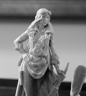 As suggested in her name, Dimension Hop Tesla is a Tesla from an alternate dimension that has hopped her way into the dimension that The Big Smoke inhabits. This is an enlarged version of the 32mm Tesla which first appeared in Infamy's Welcome To The Big Smoke Kickstarter, which I unboxed in part 2, here.