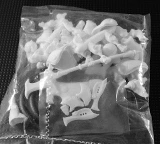 Next are two bags of plastic pieces, which make up the warjacks. One bag has the heavy warjack in it, while the other has the two light 'jack pieces mixed in amongst each other. As someone new to building warjacks, (bought the Retribution all in one box when it was available but haven't assembled any of it yet), this is quite off putting, as you have a jumble of pieces without any instructions on what to use where which could really put a newer hobbyist off.